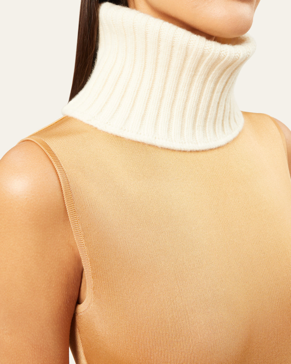 - Removable wool ribbed turtleneck